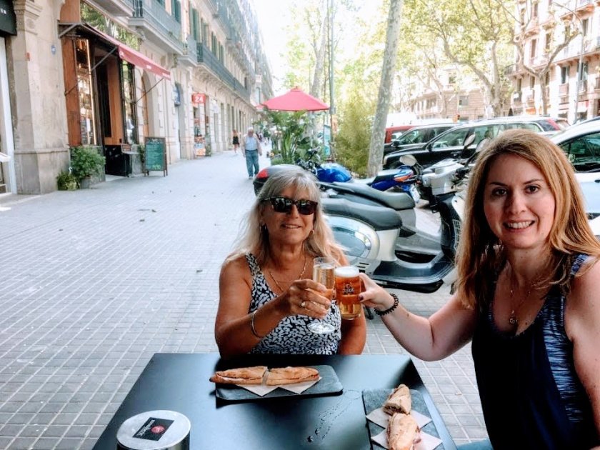 4.5EUR gets you a baguette with Iberian ham (prosciutto) and a glass of beer or wine or soft drink. Orange juice is extra. I had the local Cava, Sheryl had a beer.