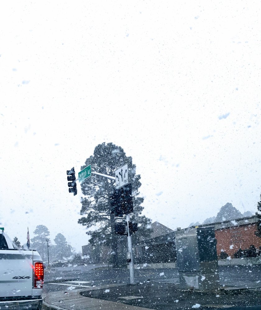 While having my pancakes for breakfast at the Flagstaff iHop ( I was feeling much better) it started snowing. As pretty as snow is, my trip never included snow as I am not fussed on the cold.