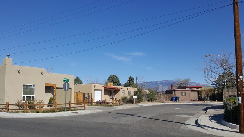 The homes in this area are Mexican influenced Adobe house. I suppose that’s because they are in New Mexico.