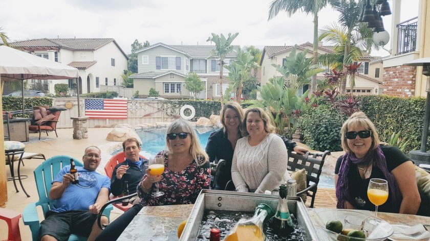 Brunch at the Alarcons is incomparable. From bloody Marys with bacon celery chili and pepper to biscuits and gravy (cooked up by Jack) waffles (made by Rebecca) with cream, chocolate, caramel sauce,strawberries, mimosas (made with Michael’s ratio of champagne to orange juice and he uses the excuse, that he doesn’t drink them so is unsure what the correct amount of champagne is required). I had 2 mimosas which were sufficient for the whole day.