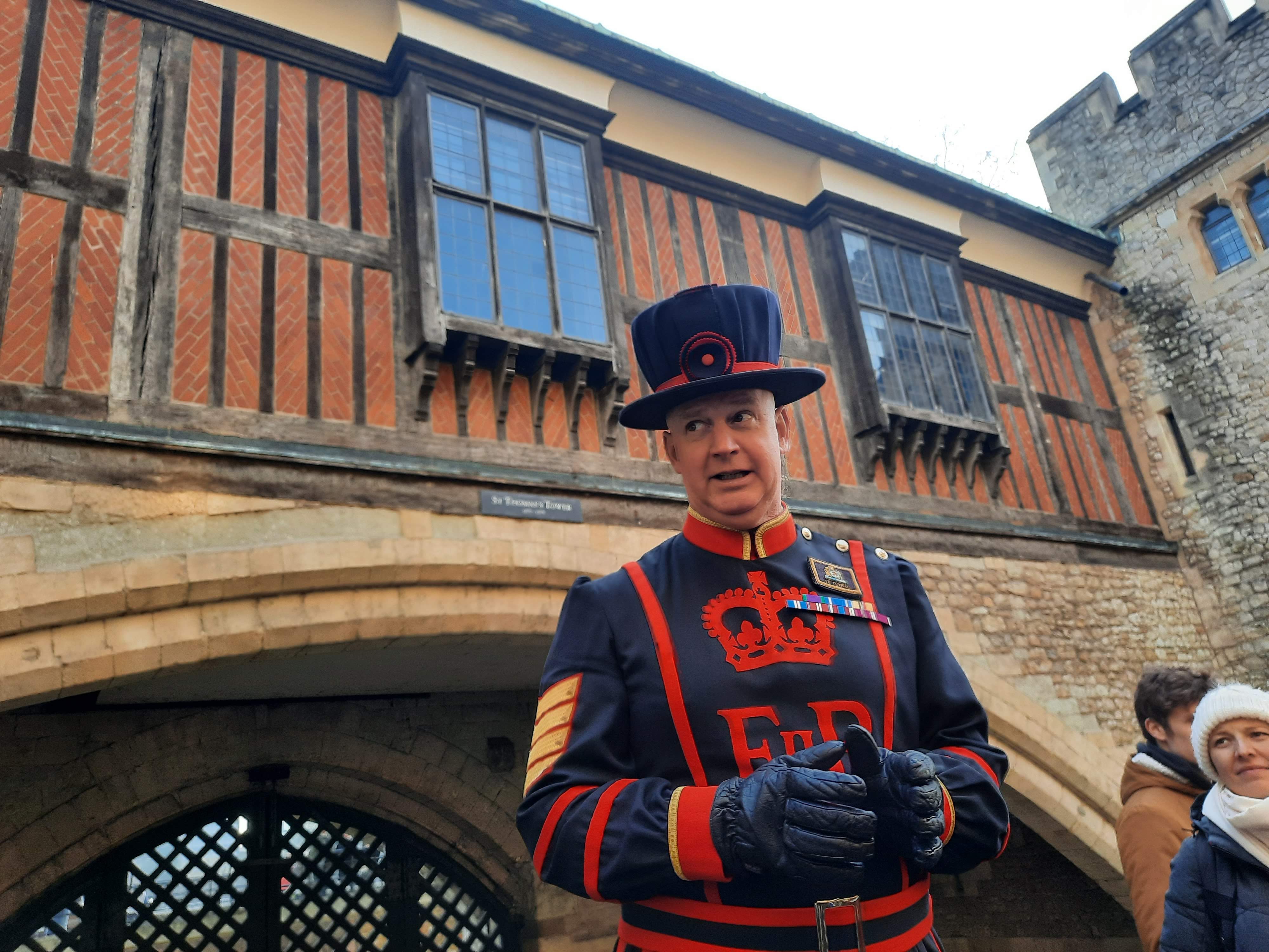 You must do the tour with one of the Beefeaters or Yeoman Warders of the Tower of London. Did you know that to be a Beefeater you have to have served at least 22 years in the armed forces, be a former warrant officer or senior non commissioned, plus hold the Long Service and Good Conduct medal and when accepted the whole family lives in the grounds of the Tower of London! Clive was our tour guide. Very entertaining but he is not “just” a tour guide. This is a part of the role of a Beefeater.
