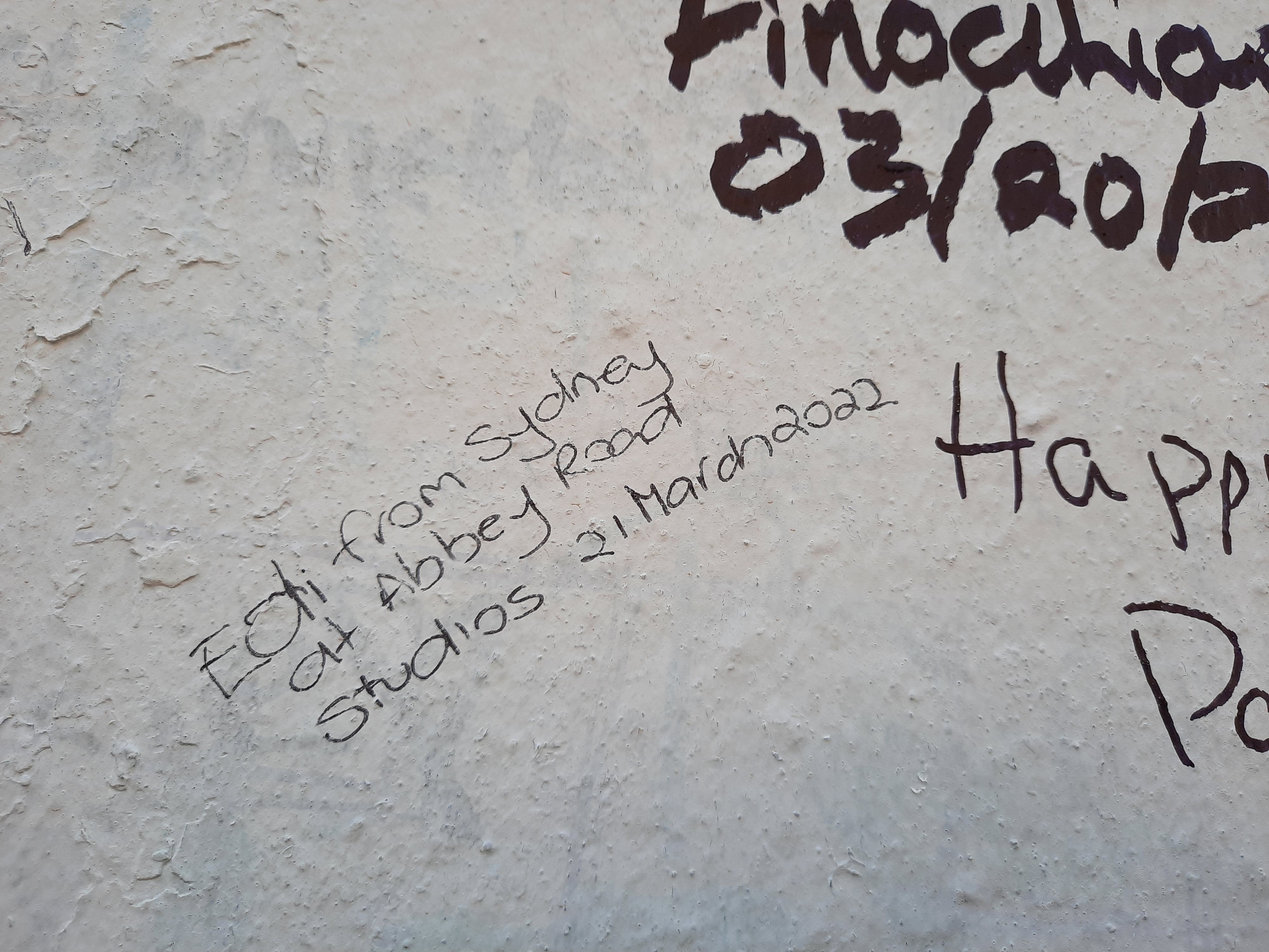 The walls out the front of the studios are filled with grafitti messages from around the world with a large message, appropriate for this current time “Free Ukraine”. I of course added my own little message. The Council paints over them from time to time to allow for new messages to be posted.