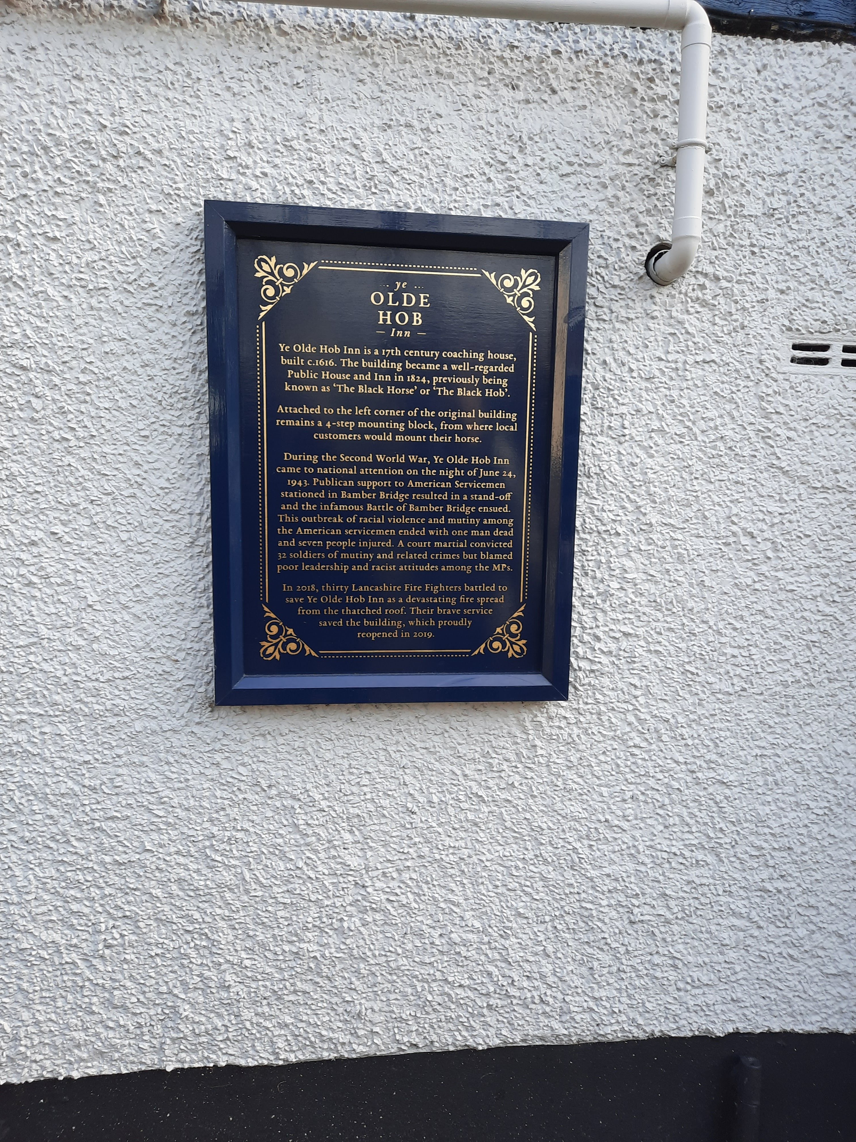Ye Old Hob Inn was built in 1616 with its original thatched roof and infamous history of the Battle of Bamber Bridge. People in the 1600s must have been short as the roof is so low!!