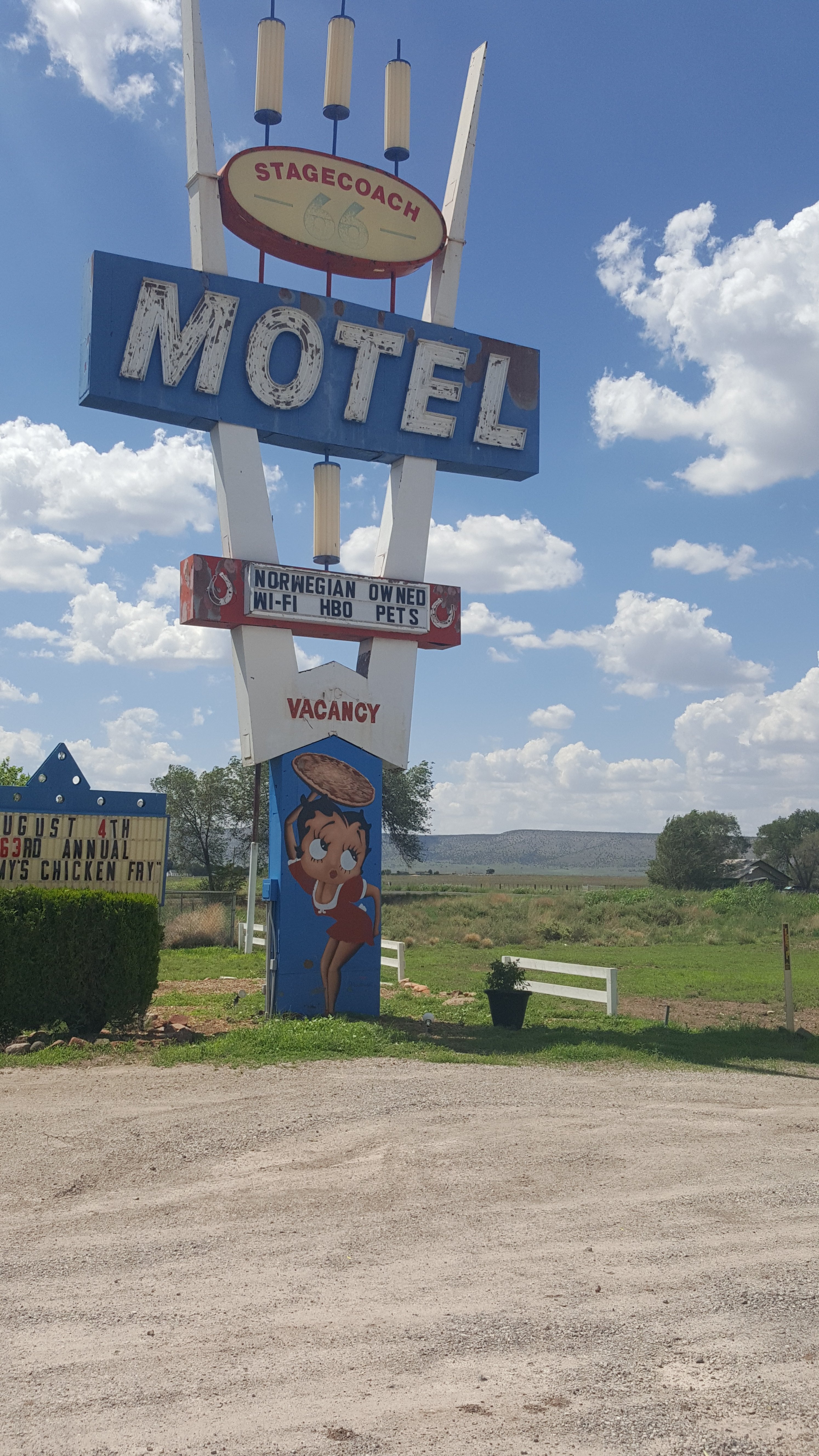 Then I saw a man filling a water tank on the back of his pickup and thought I could get directions from him. Walking towards me with a revolver in his belt I was a little wary. He was very helpful even though my distraction made the water tank overflow into the back of his pickup. I retreated as soon as I could.Back on track I arrived at this historical motel