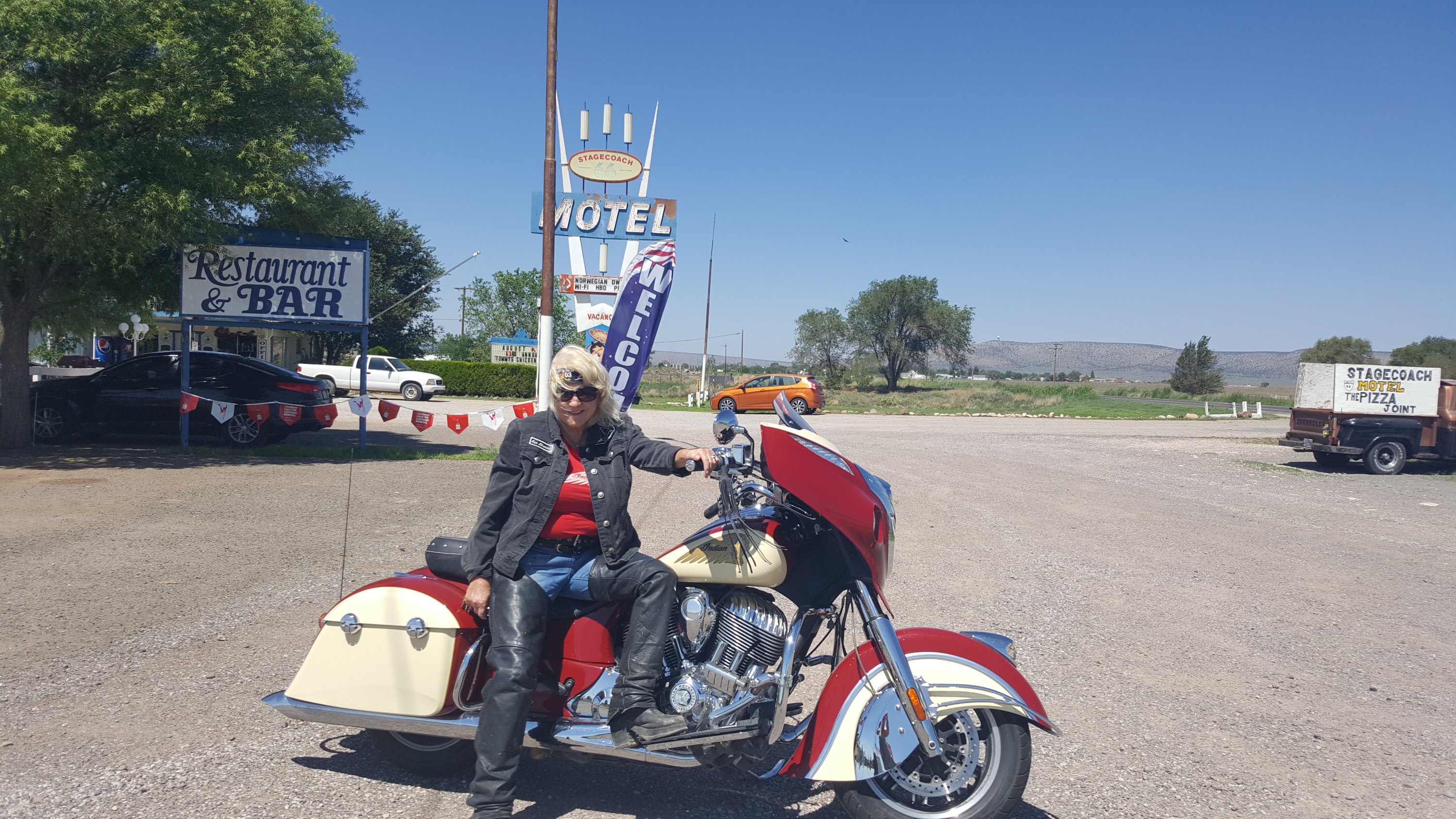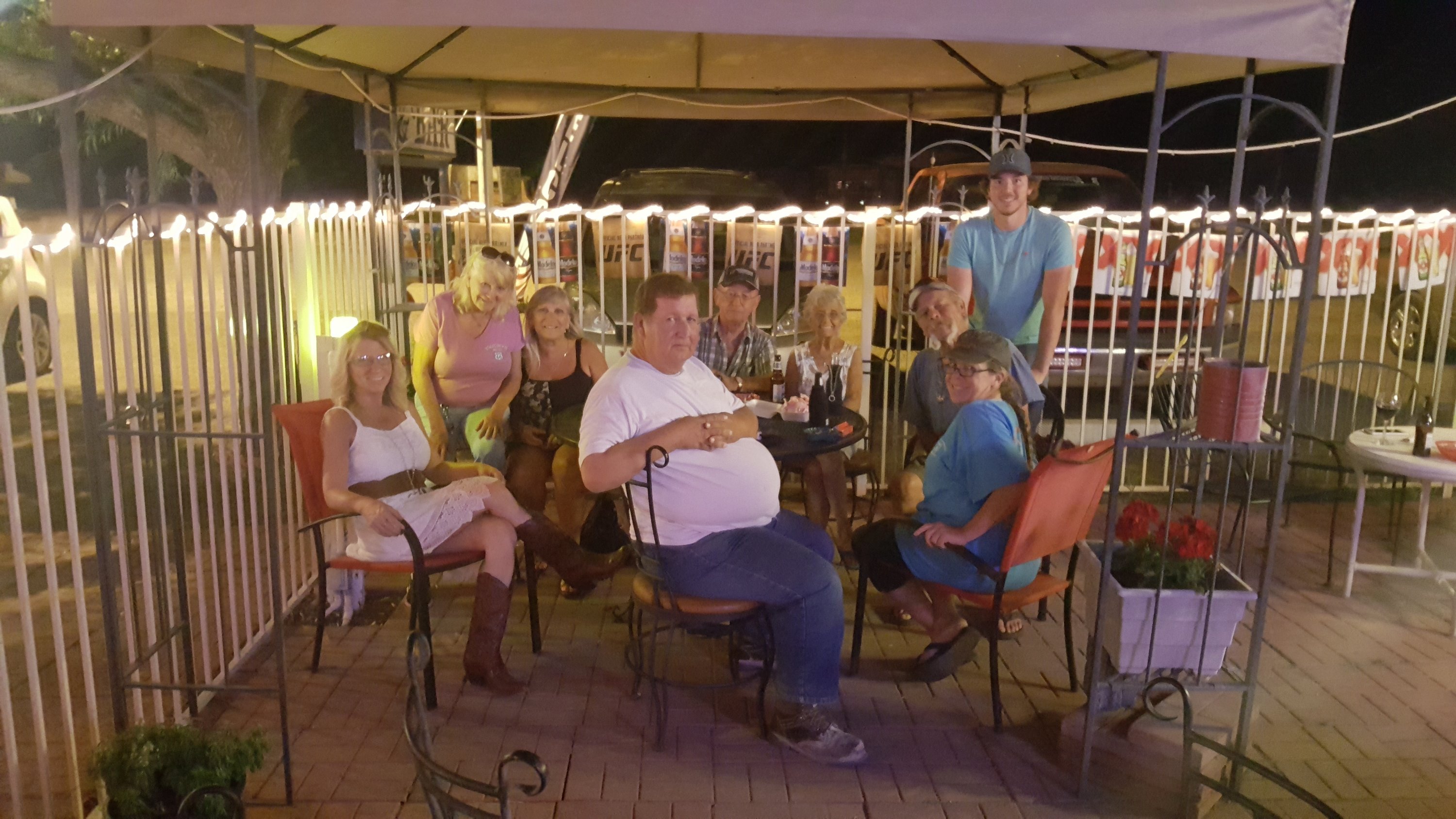 Drinks at the Pizza Joint at the Stagecoach 66 Motel with the Norwegian owner Annalise (in pink) and some locals Tracey, Tad, Steven, Clancey James and the bartender Little Bit in white.